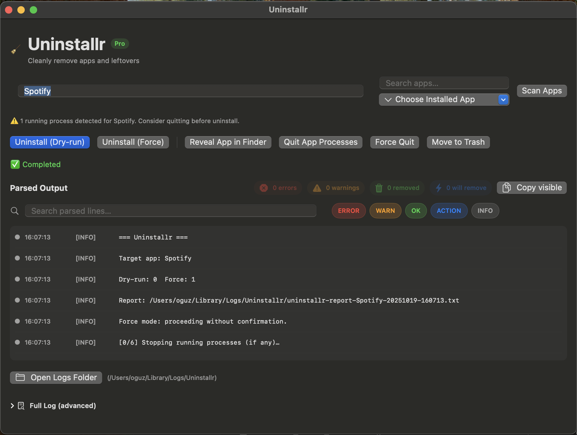 Uninstallr removes apps and every last leftover — caches, LaunchAgents, login items, and more. Notarized by Apple and ready for Sonoma & Sequoia.